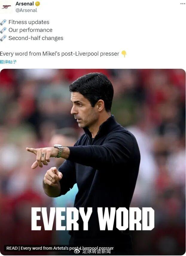 阿尔特塔出席了赛后新闻发布会,我们来看看阿森纳主帅谈到了哪些关键问题。