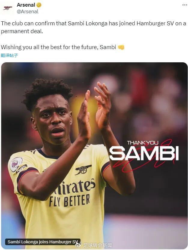 官方:阿森纳宣布洛孔加转会加盟了汉堡。