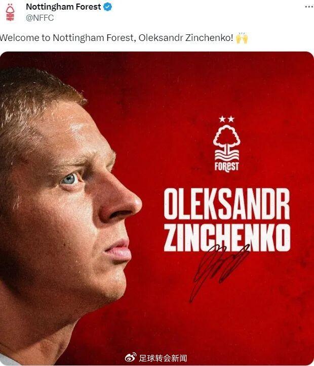 官方:诺丁汉森林宣布压哨从阿森纳租借签下了津琴科。