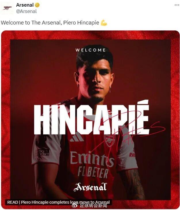 官方:阿森纳宣布从勒沃库森租借签下了因卡皮耶。
